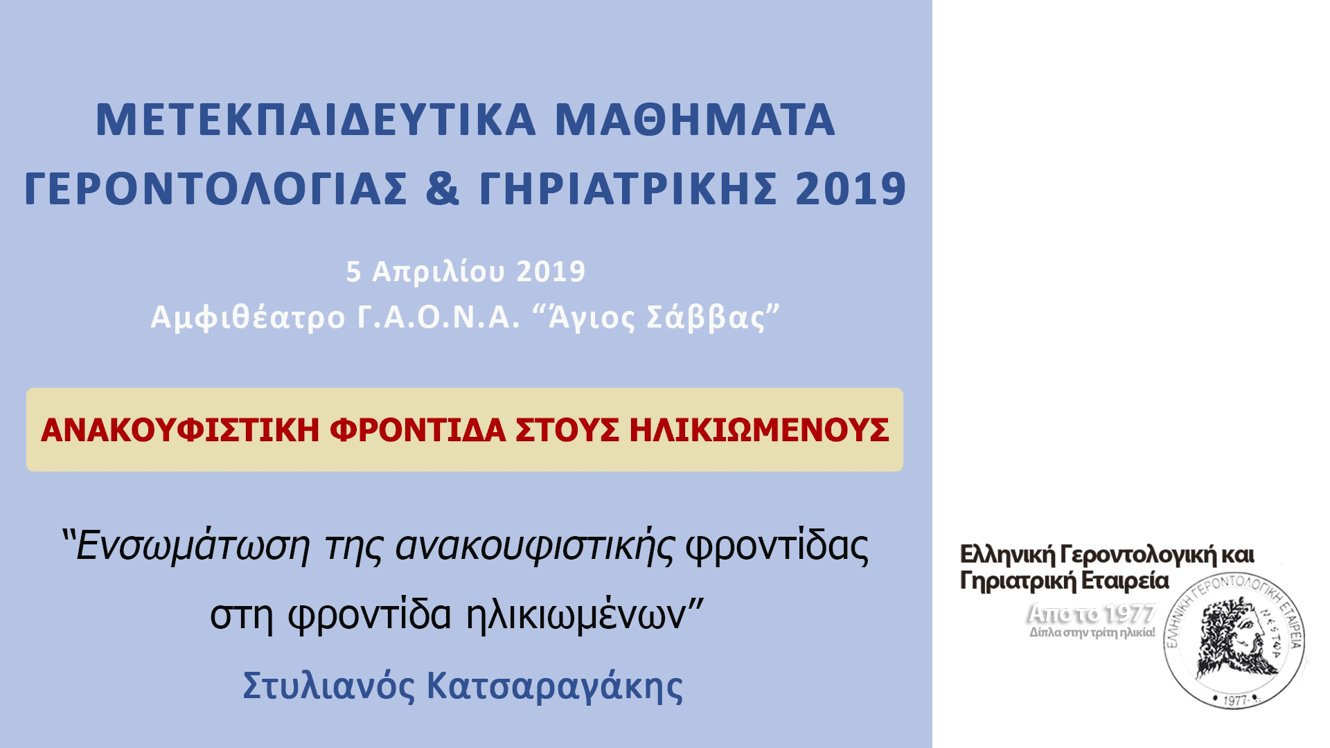 https://www.geroedu.gr/wp-content/uploads/2019/04/FormatFactoryΑΓΙΟΣ-ΣΑΒΒΑΣ-5.4.19-ΚΑΤΣΑΡΑΓΑΚΗΣ.png 1080 1920 george https://www.geroedu.gr/wp-content/uploads/2018/09/geroedu.png george2019-04-10 19:54:122019-04-10 19:54:12Στ. Κατσαραγάκης – Ενσωμάτωση της ανακουφιστικής φροντίδας στη φροντίδα ηλικιωμένων