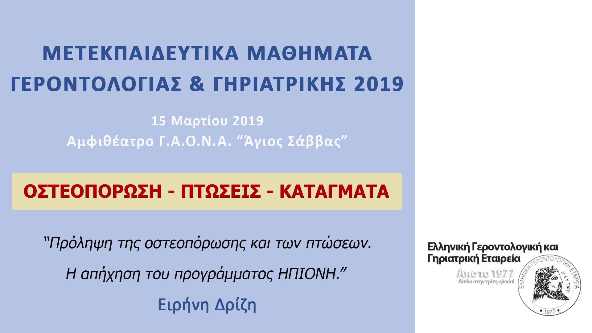 Ειρ. Δρίζη – Πρόληψη της οστεοπόρωσης και των πτώσεων. Η απήχηση του προγράμματος ΗΠΙΟΝΗ